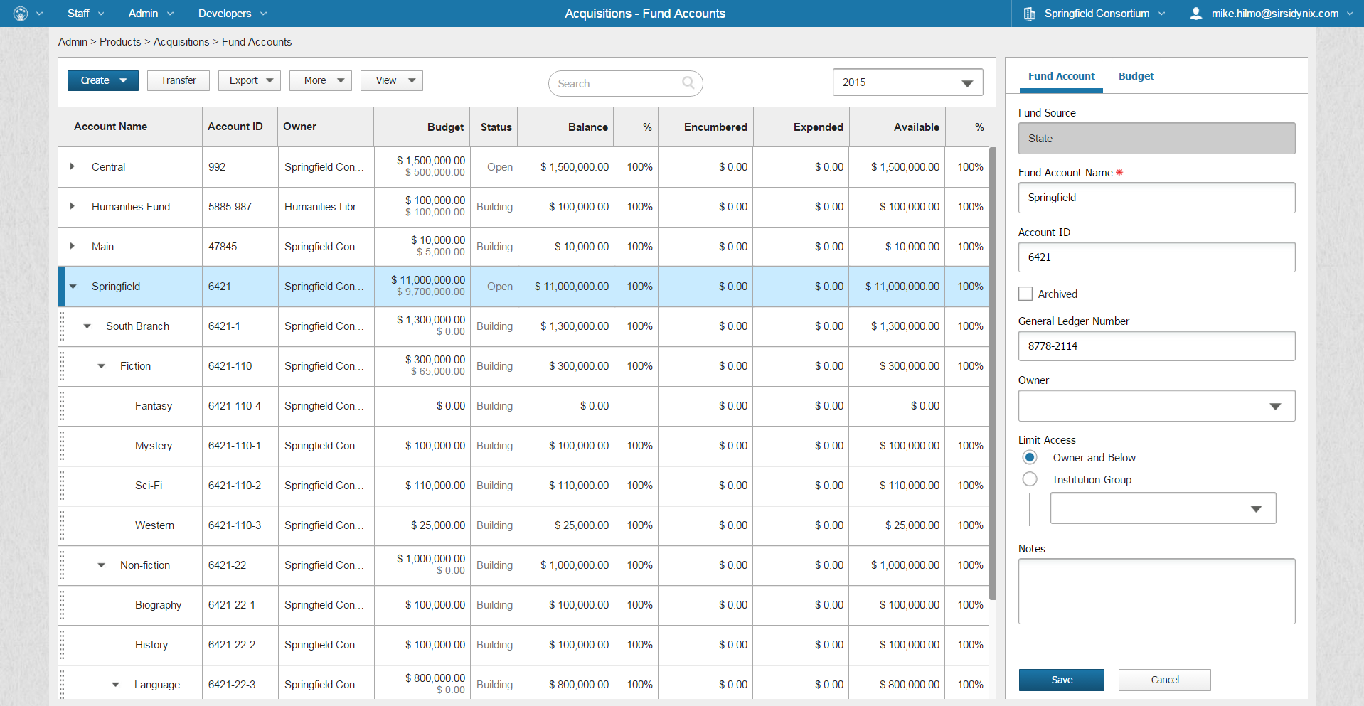 BLUEcloud Acquisitions will offer true fund hierarchies that delve as deep as you want them to. Dive into your nonfiction budget, and create a subaccount for science, then subdivide it into additional accounts for physical science and another for life science. Whatever fund structure you need, you can build it in BLUEcloud