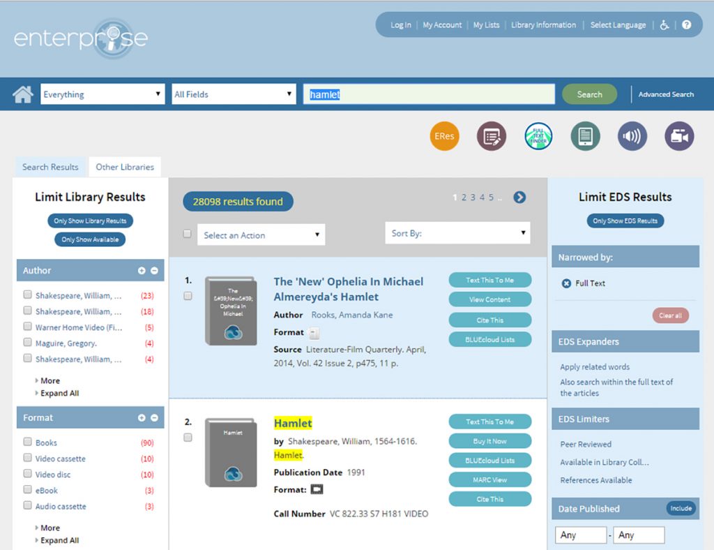 BLUEcloud Campus is a next-generation library services platform for academic and K-12 libraries, that brings all your resources and staff tools to the cloud. With powerful apps for discovery, resource management, and fulfillment, you can efficiently run your library and spend more time on what matters most—connecting your users to the materials they need.