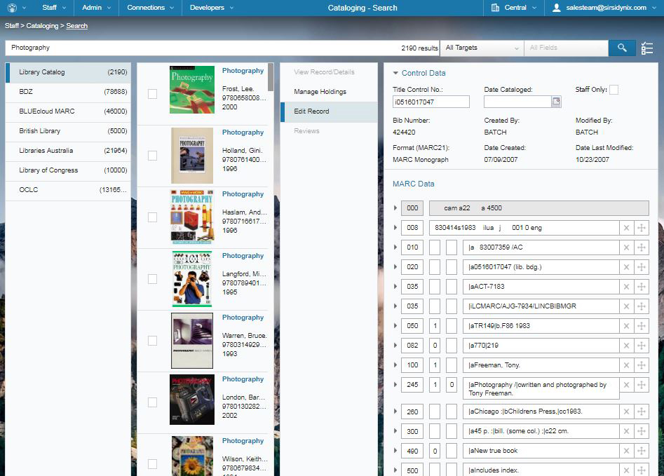 Search for records across multiple sources with one click, including an unlimited number of Z39.50 sources