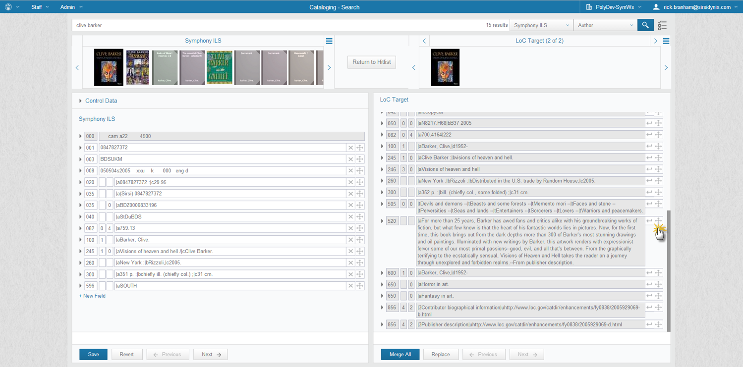 I had enthusiastically implemented the product into my regular workflow on a daily basis. Since 95% of my work is copy cataloging, I was in instant gratification heaven. I could bypass many (I thought) cumbersome steps to load records into our catalog and get them into the hands of our patrons.