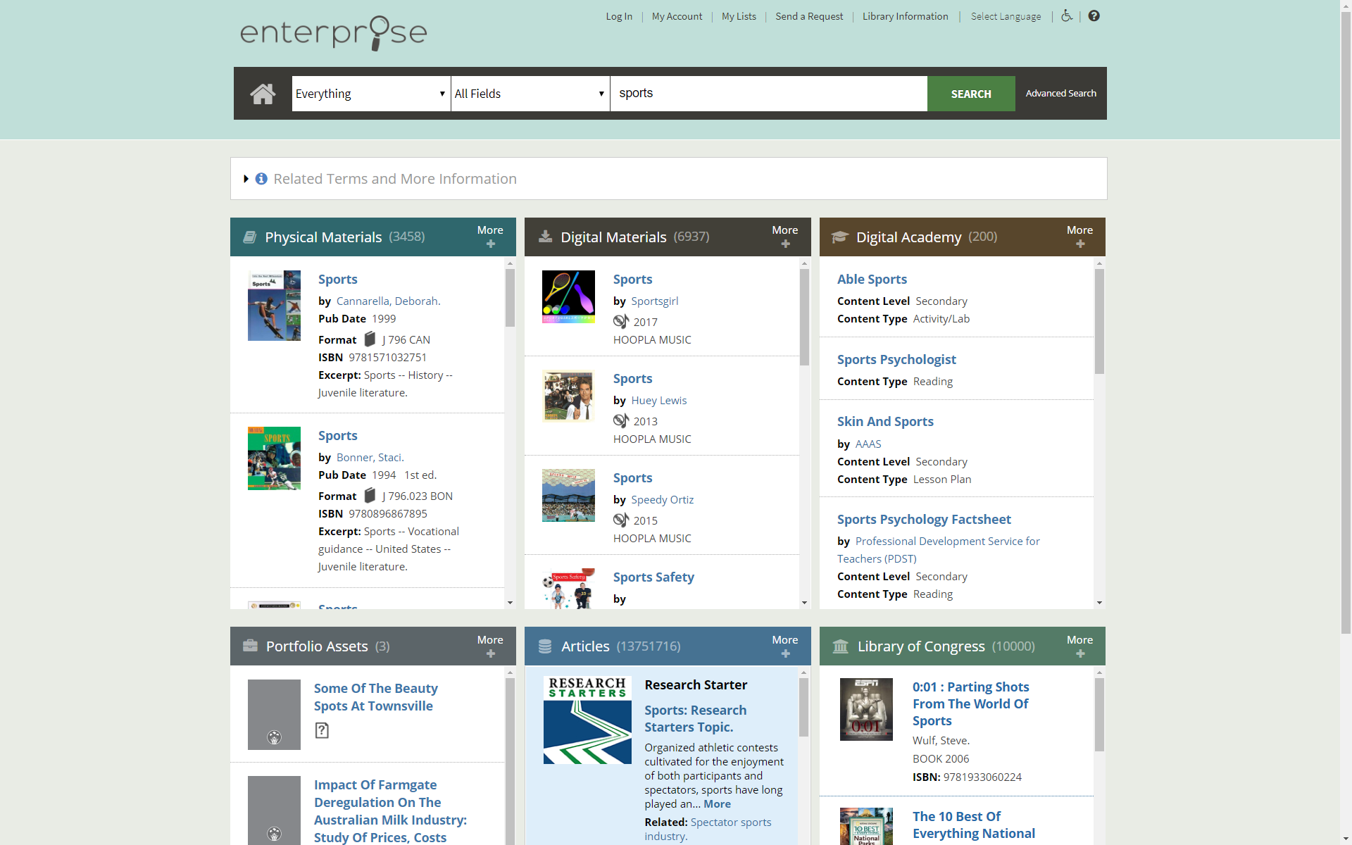 Combine Enterprise with eResource Central to give users one-click access to eBooks, eAudiobooks, and Video from your catalog. Connect Portfolio to interfile your digital assets with your library’s other resources. Want to add more databases to your catalog? Enterprise also supports as many federated search sources as you need. It can even collapse the display for titles with multiple formats and editions, and will display these in a user-friendly way.